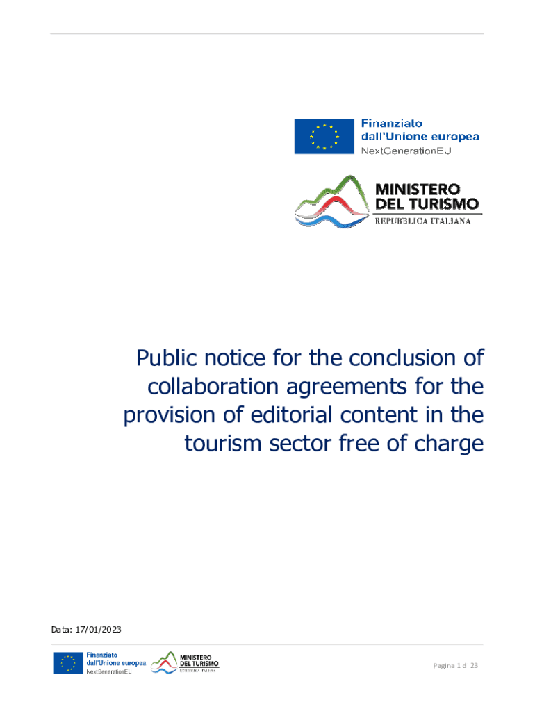 Public notice for the conclusion of collaboration agreements for the provision of editorial content in the tourism sector free of charged: 17/01/2023Pagina 1 DI 23Public notice for the conclusion