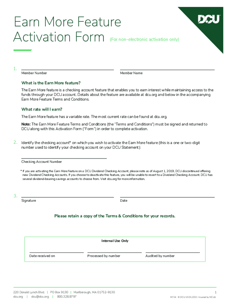 Earn More Feature Activation Form(For nonelectronic activation only)1. Member NumberMember Somewhat is the Earn More feature? The Earn More feature is a checking account feature that enables you to