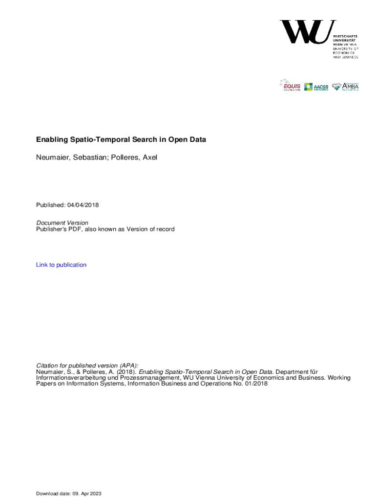 Enabling Spatio-temporal Search in Open Data Neubauer, Sebastian; Dollars, Republished: 04/04/2018 Document Version Publisher\'s PDF, also known as Version of recording to publicationCitation for