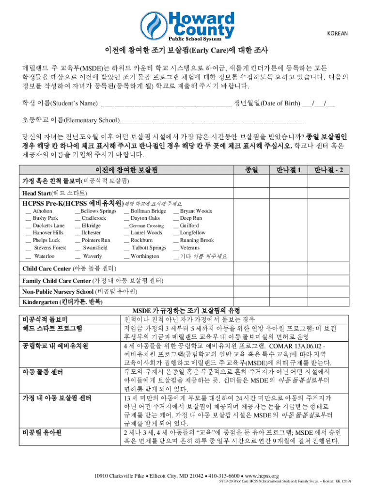 KOREAN (Early Care) (MSDE), (). (Students Name) ___