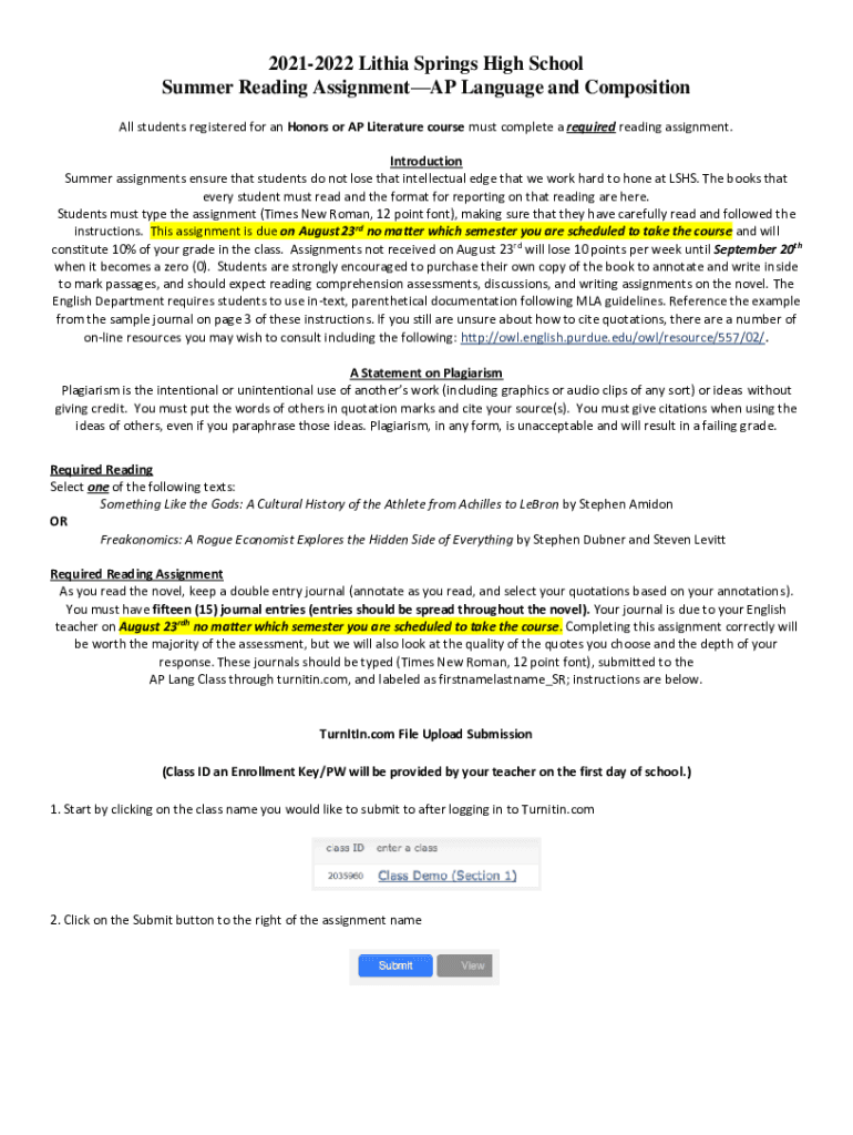 20212022 Lithia Springs High School Summer Reading Assignment AP Language and Composition All students registered for an Honors or AP Literature course must complete a required reading assignment.