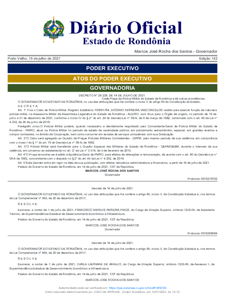 Porto Velho, 15 de Julio de 2021Edio 142PODER EXECUTIVE