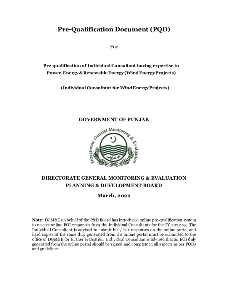 (Individual Consultant for Wind Energy Projects)GOVERNMENT