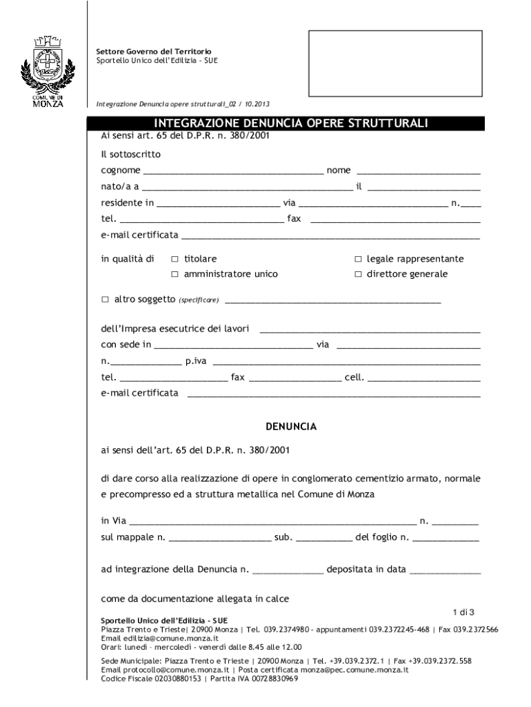 Set tore Governor del Territory Portillo UNIDO dellEdilizia SUEIntegrazione Dennis opera structural_02 / 10.2013INTEGRAZIONE DENNIS OPERA STRUCTURAL Ai sense art. 65 Del D.P.R. n. 380/2001 IL sottoscritto