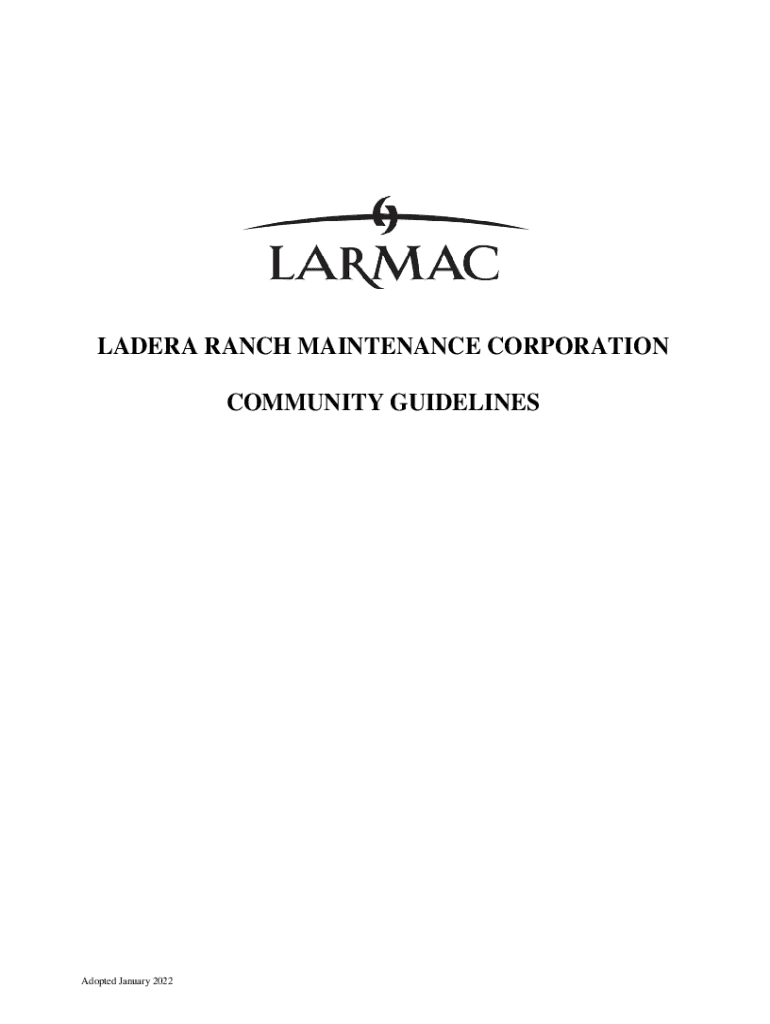MADERA RANCH MAINTENANCE CORPORATION COMMUNITY GUIDELINESAdopted January 2022LARMAC COMMUNITY GUIDELINES TABLE OF CONTENTS I. Introduction. General Guidelines A. Code of Conduct B. TARMAC Membership