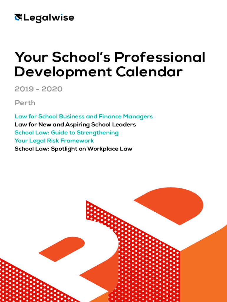 Your Schools Professional Development Calendar 2019 2020 Perth Law for School Business and Finance Managers Law for New and Aspiring School Leaders School Law: Guide to Strengthening Your Legal Risk