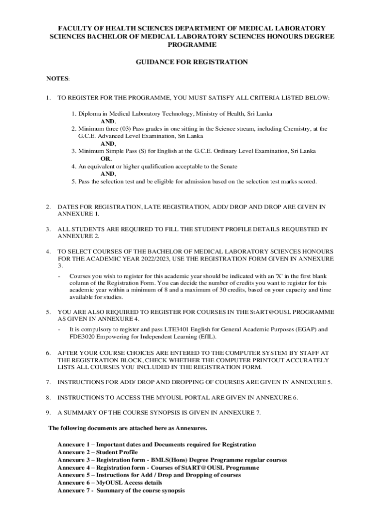 Get the free Bachelor of Science in Medical Laboratory Science (BS)