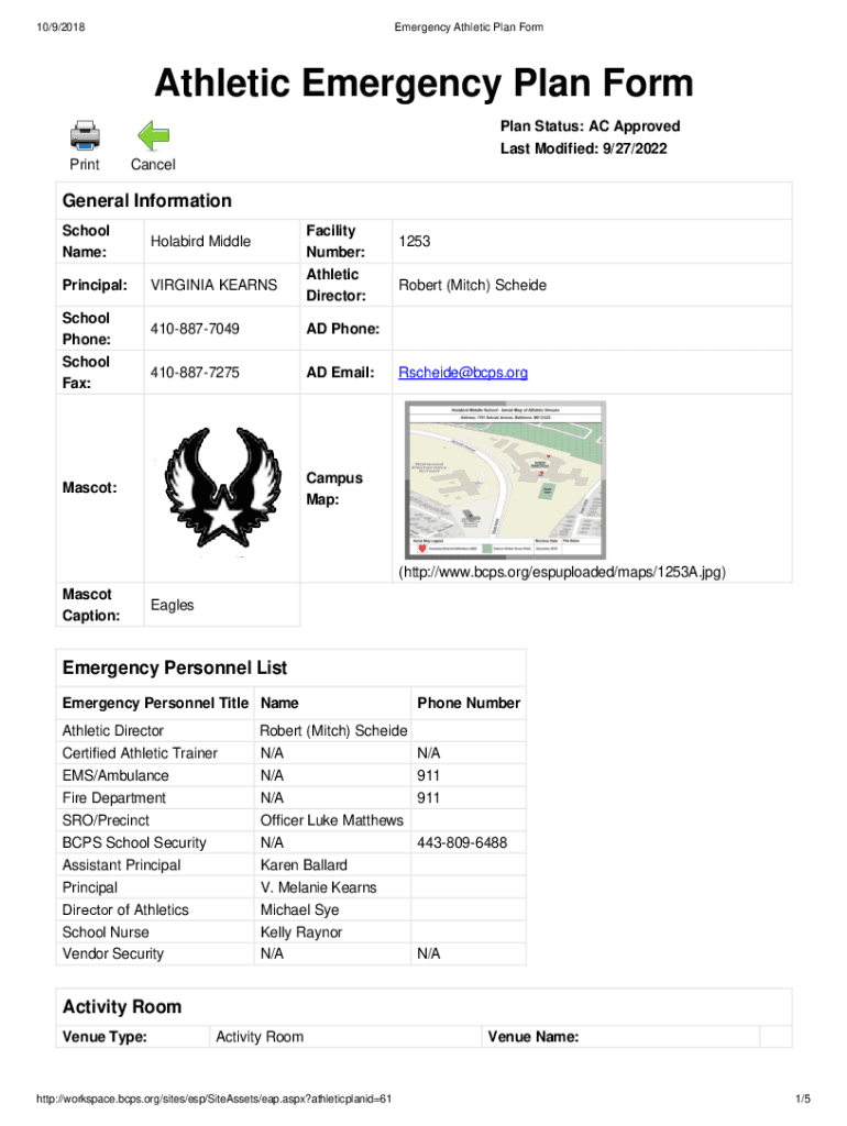 10/9/2018Emergency Athletic Plan Nonathletic Emergency Plan Form Plan Status: AC Approved Last Modified: 9/27/2022 PrintCancelGeneral Information School Name:Howard MiddlePrincipal:VIRGINIA KEARNSSchool