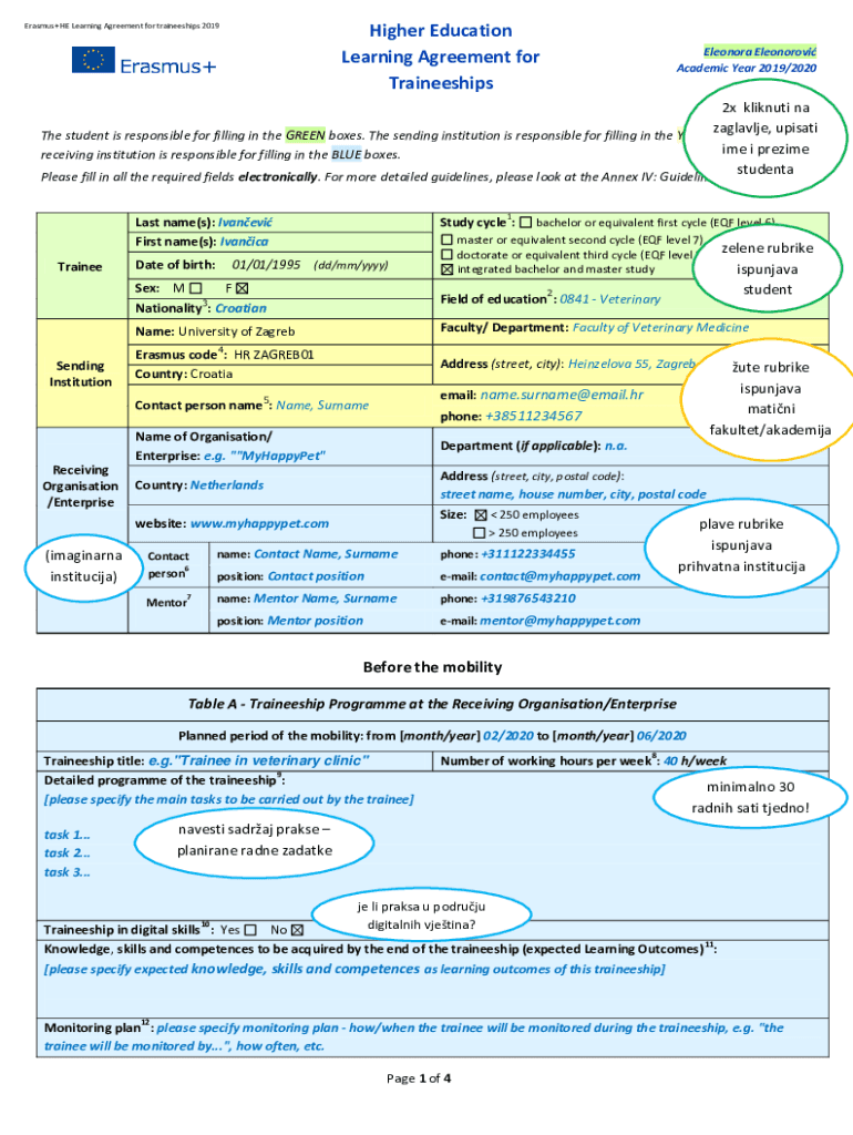 Higher Education Learning Agreement for Traineeships Erasmus+ HE Learns Agreement for traineeships 2019Eleonora Eleonora Academic Year 2019/20202x kliknuti Na zaglavlje, PISAI The student is responsible