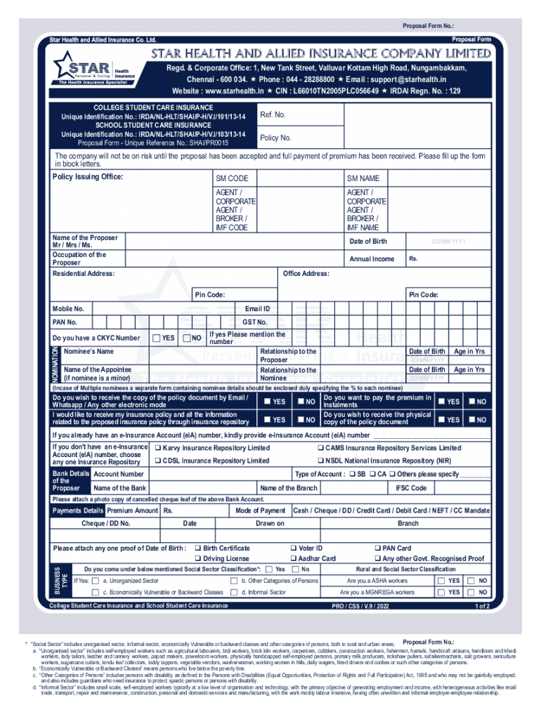Get the free Proposal Form for College and School Student Care Insurance - V.9.cdr