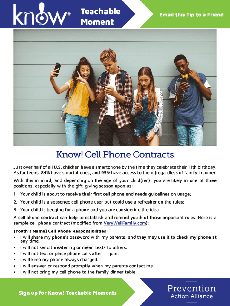 Teachable MomentEmail this Tip to a Friending! Cell Phone Contracts Just over half of all U.S. children have a smartphone by the time they celebrate their 11th birthday. As for teens, 84% have smartphones,