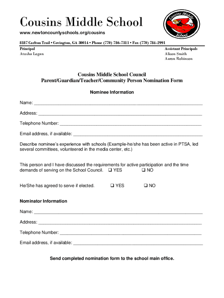 Cousins Middle School www.newtoncountyschools.org/cousins 8187 Carlton Trail Covington, GA 30014 Phone (770) 7867311 Fax (770) 7842991 Principal Assistant Principals Natasha Logan Alison Smith Aaron