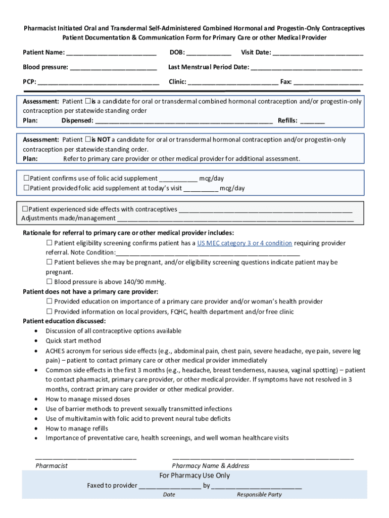 Pharmacist Initiated Oral and Transdermal SelfAdministered Combined Hormonal and ProgestinOnly Contraceptives