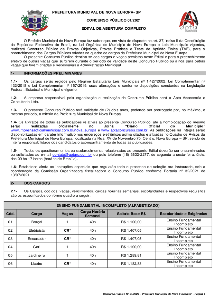 EDIT AL DE APERTURE COMPLETED Predator Municipal de Nova Europa FAZ saber Que, em vista do disposal no art. 37, incisor II to Constitute