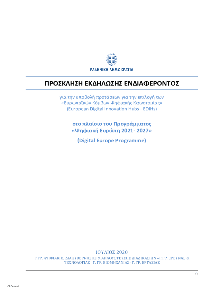 (European Digital Innovation Hubs Edits) 2021 2027 (Digital Europe Program) 2020. &