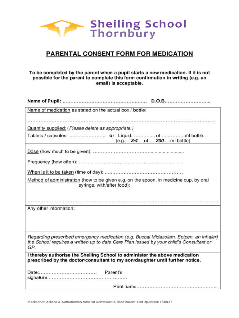 Get the free To be completed by the parent when a pupil starts a new medication