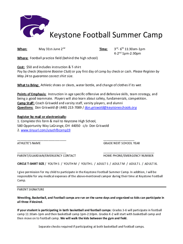 Edit your keystone football summer camp form online