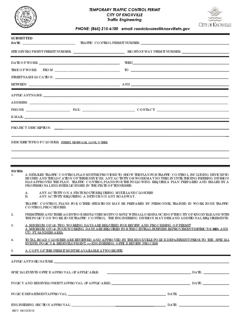 City of Knoxville, Tennessee Stormwater Engineering Division www.knoxvilletn.gov/engineering/Land Development Manual October 2022TEMPORARY TRAFFIC CONTROL PERMIT As part of any RightofWay permit,