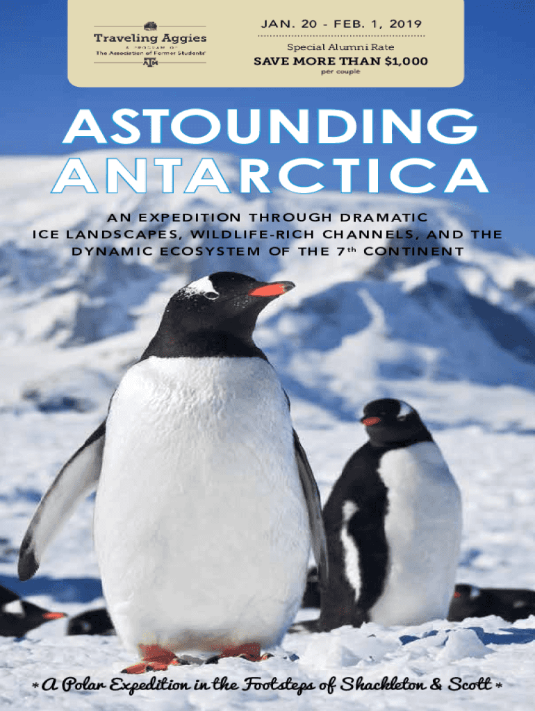 JAN. 20 FEB. 1, 2019 Special Alumni Rate SAVE MORE THAN $1,000 per coupleASTOUNDING ANTARCTICA A N E XP E EDITION TH YOU GH DRAMA TIC I C E LA NTSC A P E S, W WILDLIFE RICH C CHANNELS, AND The D Y
