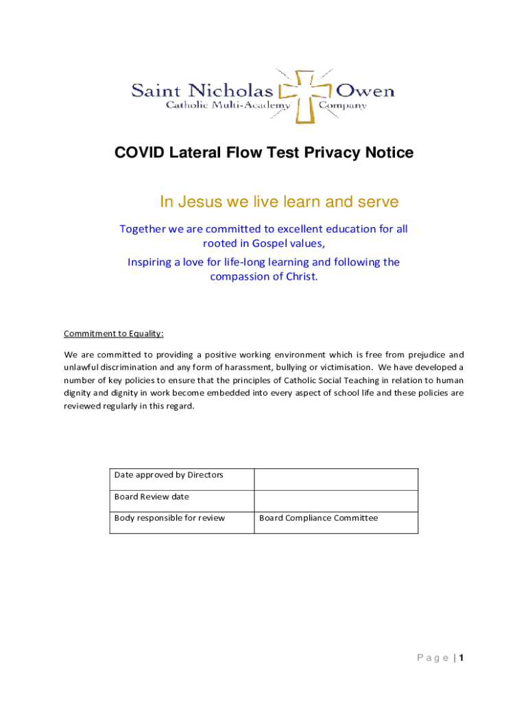 COVID-19 Lateral Flow Test Privacy Notice In Jesus we live learn and serve Together we are committed to excellent education for all rooted in Gospel values, Inspiring a love for lifelong learning