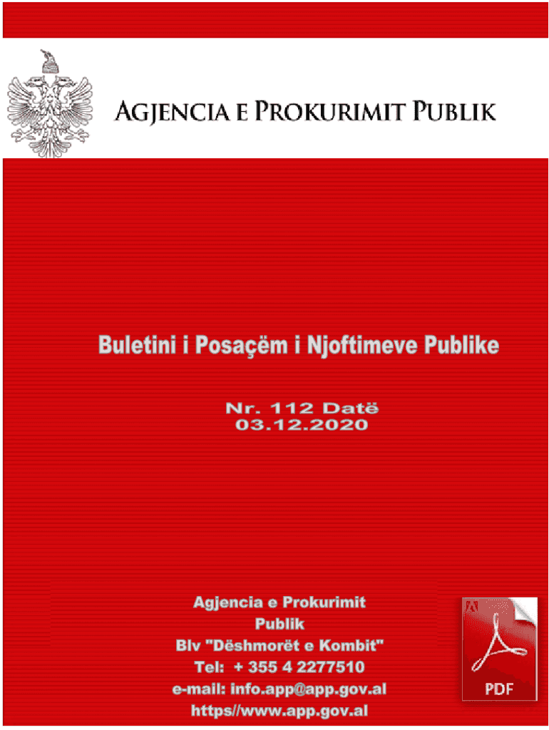 Bulletin I Post NR. 112 DAT 03 Director 2020Agjencia e Prokurimit PublikKREU I PAR Bulletin i Prokurimit PublikBulevardi Short e Combat, Shill i Ministrant Tel.+ 355 4 22 77 510https://www.app.gov.al2/79Buletini