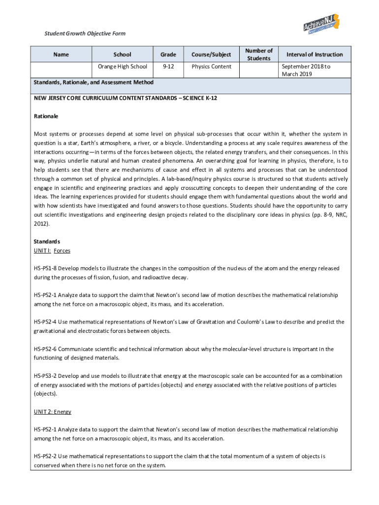Student Growth Objective Form