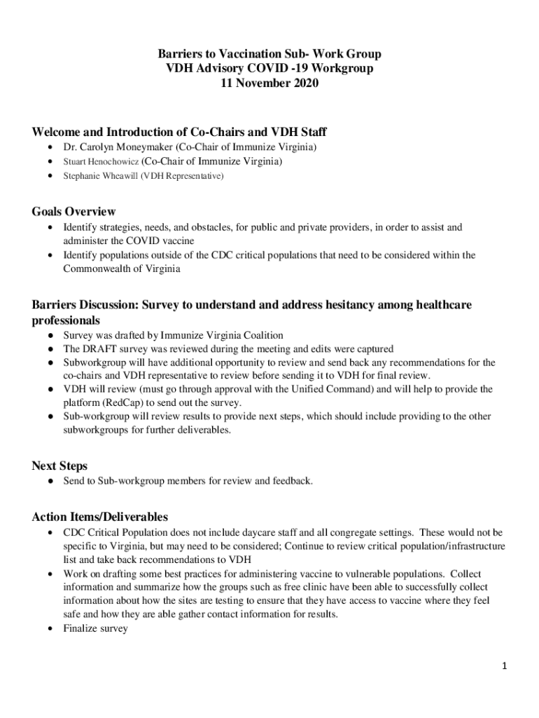 Get the free Barriers to Vaccination Sub- Work Group VDH Advisory COVID