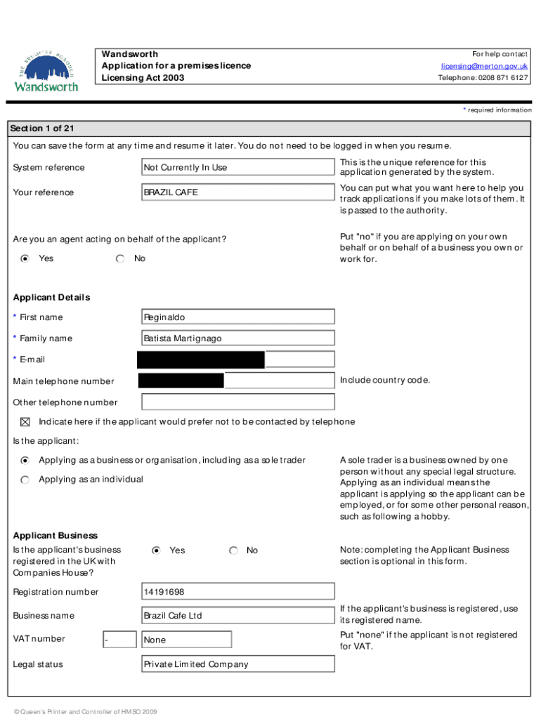 Licensing Act 2003For help contact