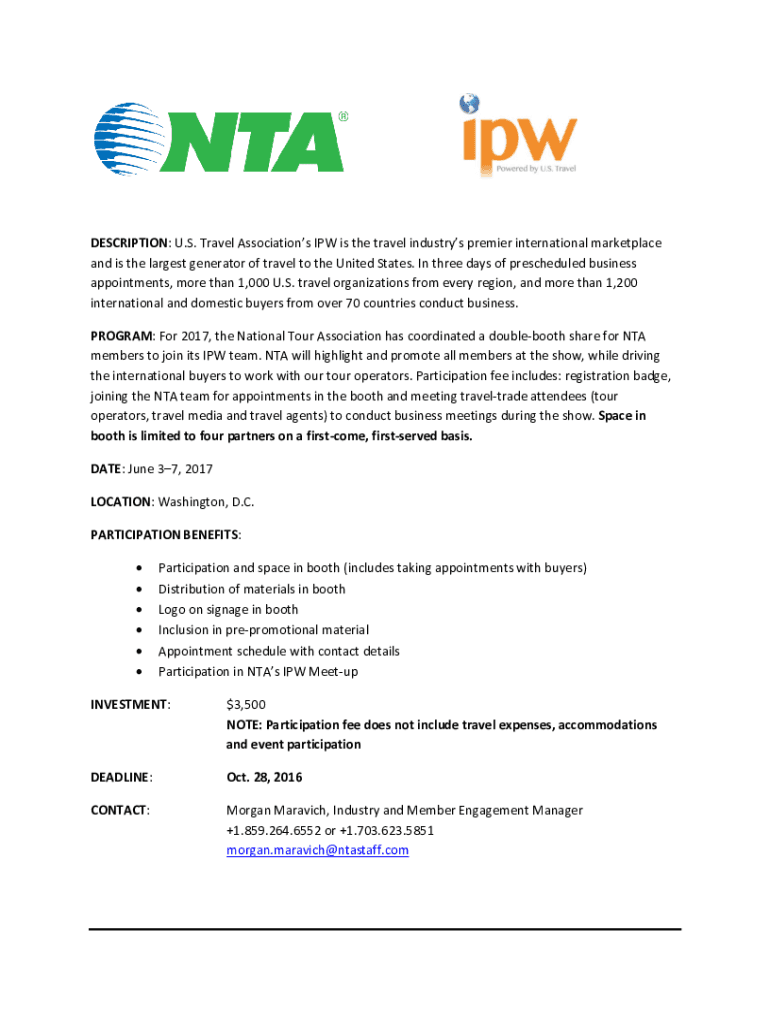 Fill out your us travel associations ipw online with pdfFiller!