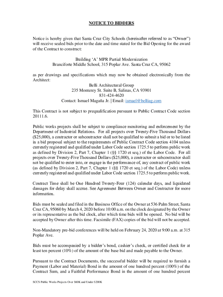 Get the free NOTICE TO BIDDERS Notice is hereby given that Santa Cruz ...