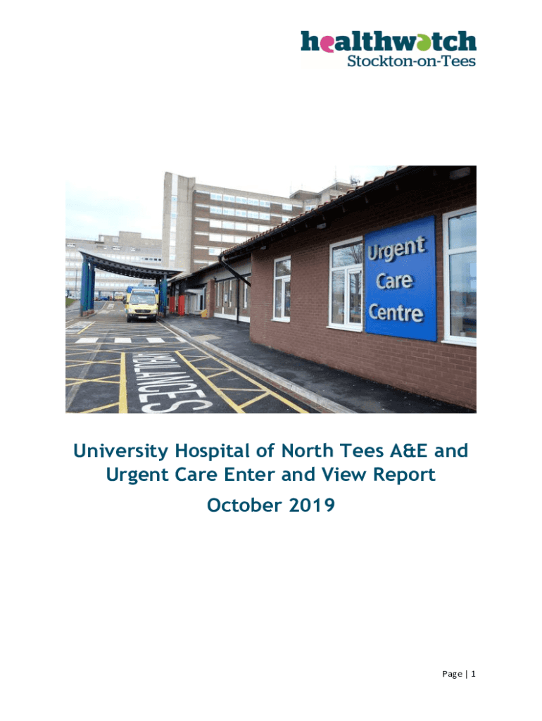 University Hospital of North Tees A&E and Urgent Care Enter and View Report October 2019Page | 1What is Health watch? Health watch England is the national consumer champion in health and social care.