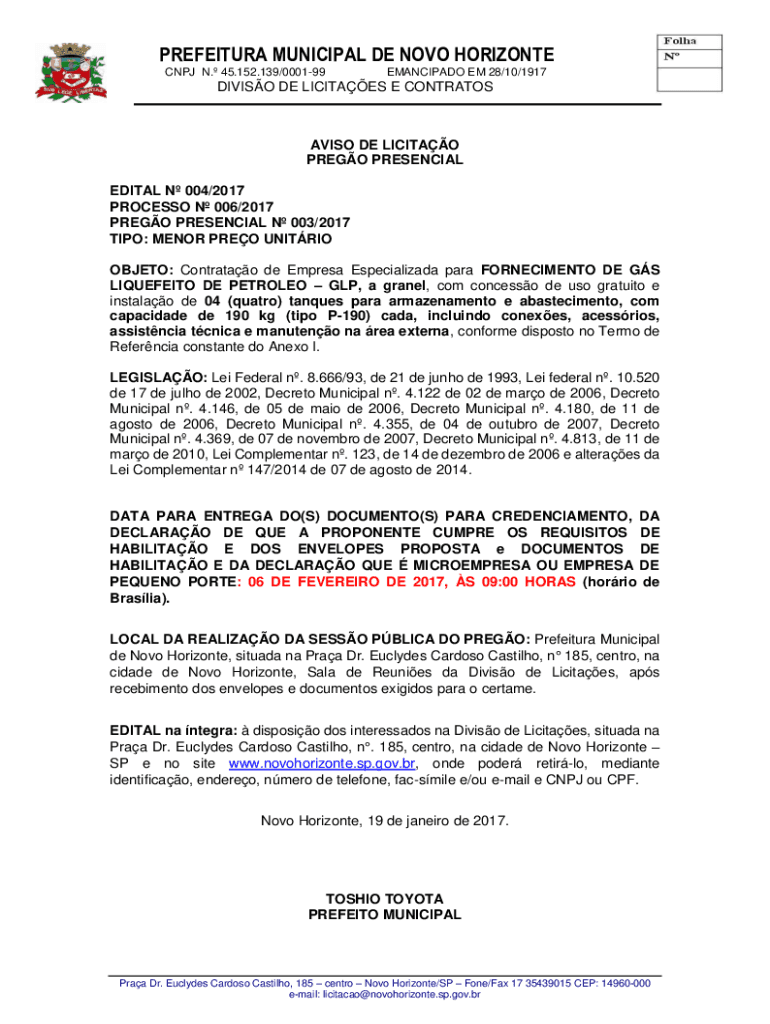 Obtenha o gratuito OBJETO: Contratao de Empresa Especializada para FORNECIMENTO DE GS - publicaca...