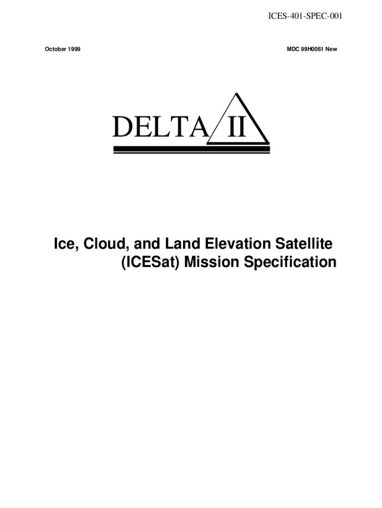 ICES401SPEC001October 1999MDC 99H0061 Newsela II Ice, Cloud, and Land Elevation Satellite (ICE Sat) Mission Specification October 1999MDC 99H0061 New Ice, Cloud, and Land Elevation Satellite (ICE