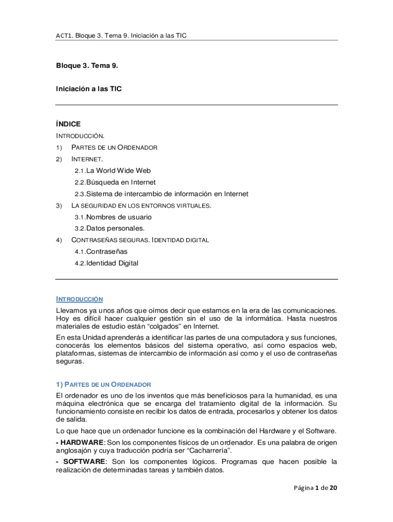 1)PARTIES DE UN ORDENADOR2)INTERNET.