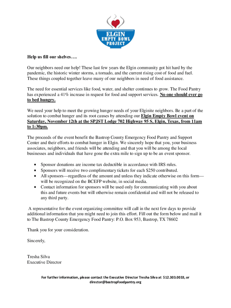 Help us fill our shelves. Our neighbors need our help! These last few years the Elgin community got hit hard by the pandemic, the historic winter storms, a tornado, and the current rising cost of