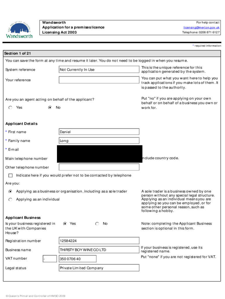 Licensing Act 2003For help contact