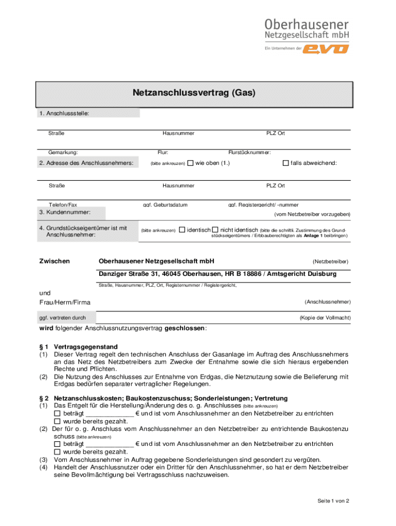 So füllen Sie netzanschlussvertrag gas aus