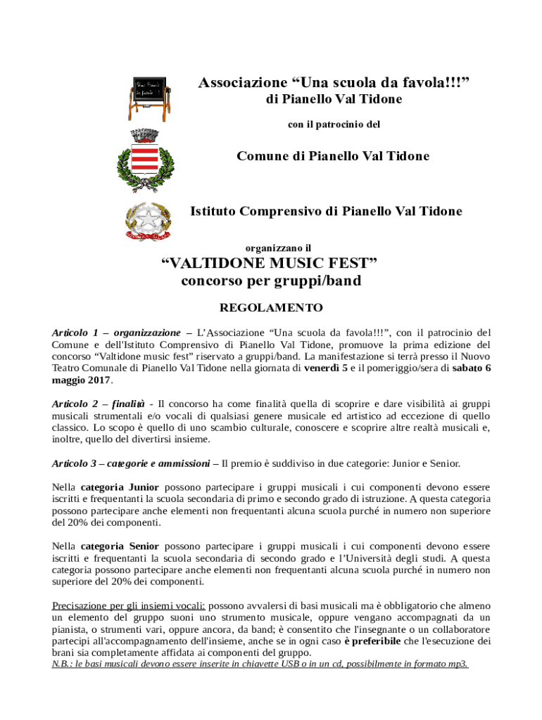 Association RNA Sculley the favor!!! Di Pirandello Val Ti done con IL Patricio welcome DI Pirandello Val TidoneIstituto Compressive DI Pirandello Val Ti done organizing ilVALTIDONE MUSIC FEST concerto