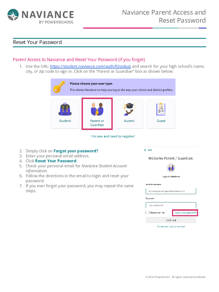 Variance Parent Access and Reset Password Reset Your Password Parent Access to Variance and Reset Your Password (if you forget) 1. Use the URL: https://student.naviance.com/auth/fclookup and search