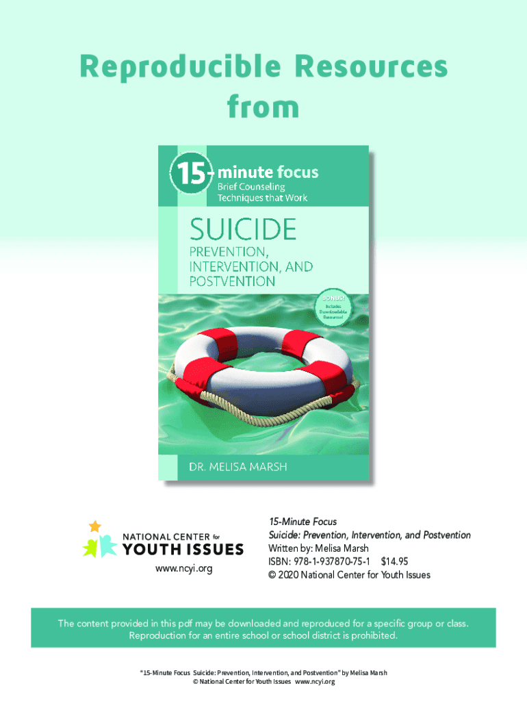 Reproducible Resources from.NCY.org15Minute Focus Suicide: Prevention, Intervention, and Convention Written by: Melisa Marsh ISBN: $978193787075114.95 2020 National Center for Youth Issues content