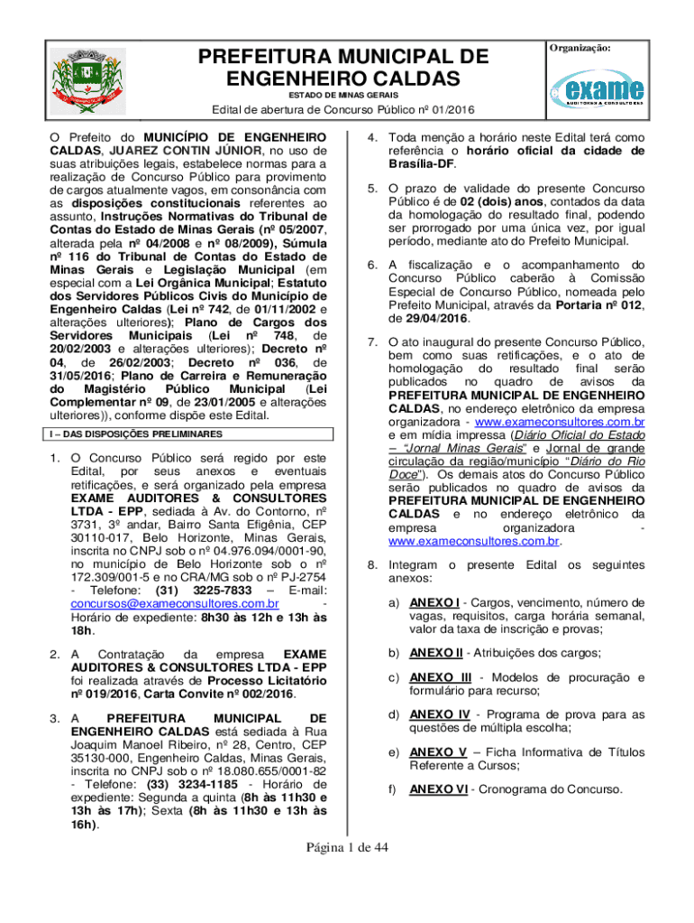 PREFECTURE MUNICIPAL DE ENGENDER CALDASOrganizao:ESTATE DE MINES GERAISEdital de aperture DE Concurs Public n 01/2016O Predator do MUNICIPAL DE ENGENDER CALLAS, JUAREZ CONTAIN JUNIOR, no us ode seas