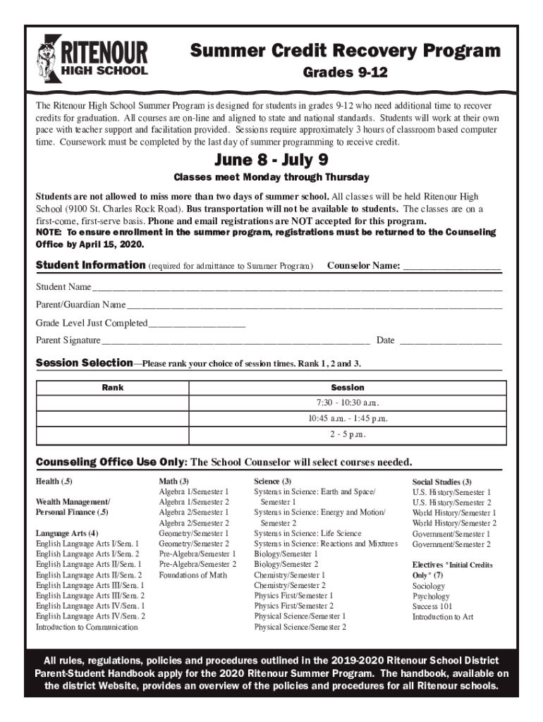 Summer Credit Recovery Program Grades 912 The Tenor High School Summer Program is designed for students in grades 912 who need additional time to recover credits for graduation. All courses are online
