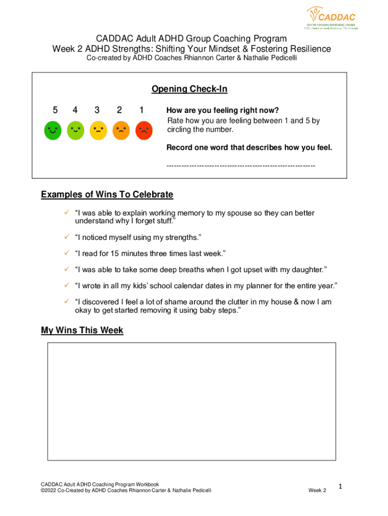 CAD DAC Adult ADHD Group Coaching Program Week 2 ADHD Strengths: Shifting Your Mindset & Fostering Resilience Cocreated by ADHD Coaches Rhiannon Carter & Nathalie PedicelliOpening CheckIn54321How