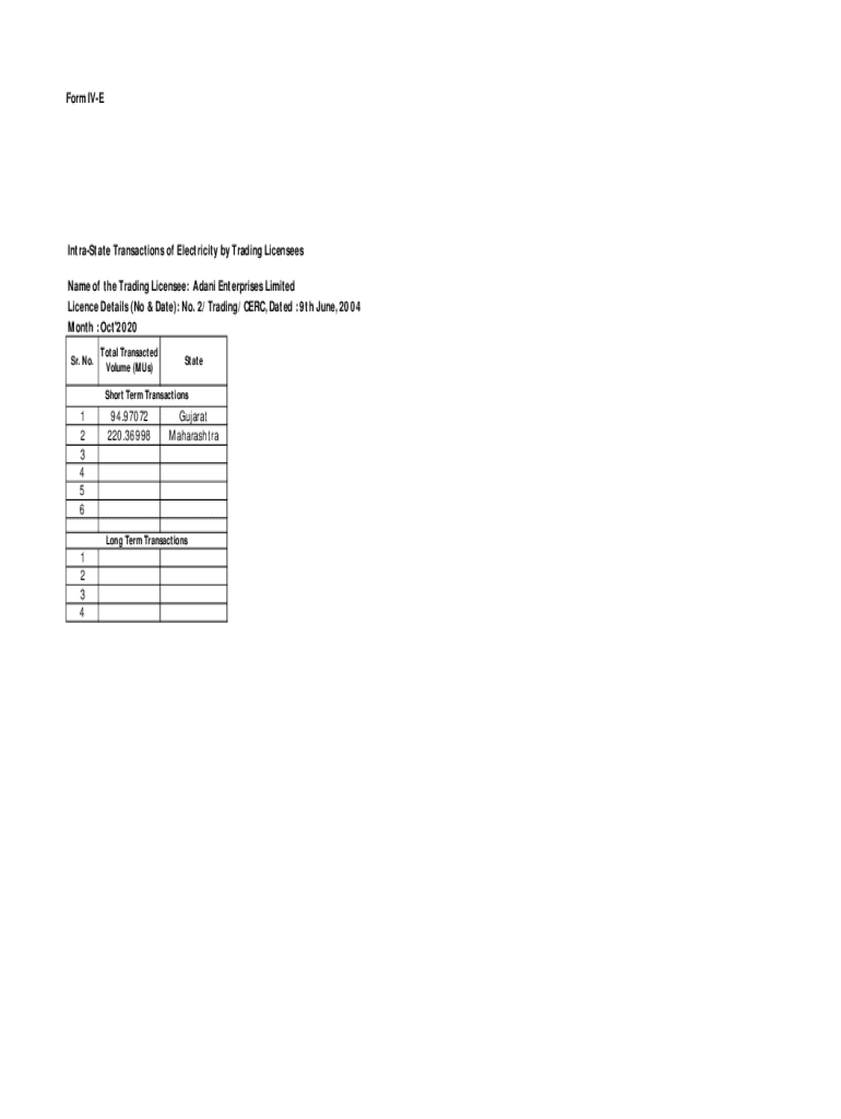 Form Intrastate Transactions of Electricity by Trading Licensees