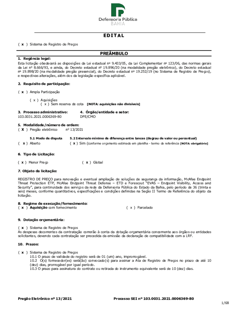 EDIT AL (x) System de Registro de PreosPREMBULO 1. Regalia legal: ESTA licit obedience as disposes the Lei gradual no 9.433/05, the Lei Complementary no 123/06, was normal Gervais the Lei no 8.666/93,