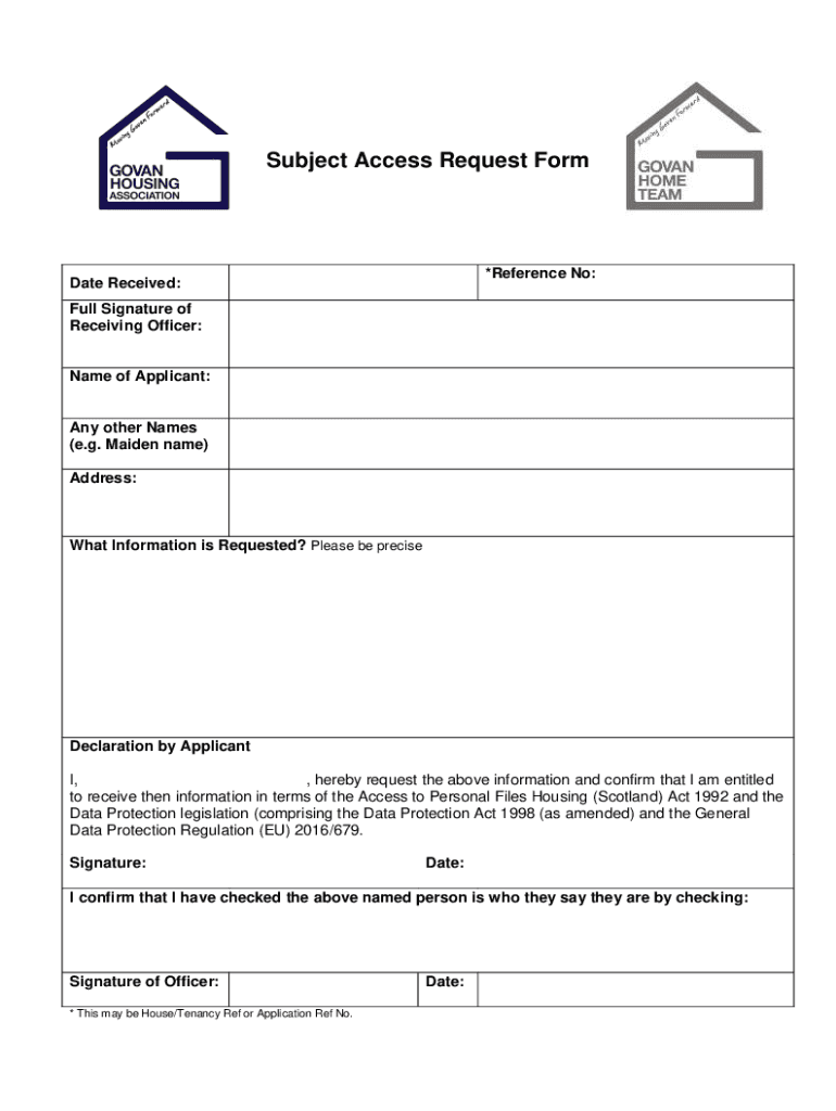 Subject Access Request Form×Reference No:Date Received: Full Signature of Receiving Officer:Name of Applicant:Any other Names (e.g. Maiden name) Address:What Information is Requested? Please be preciseDeclaration