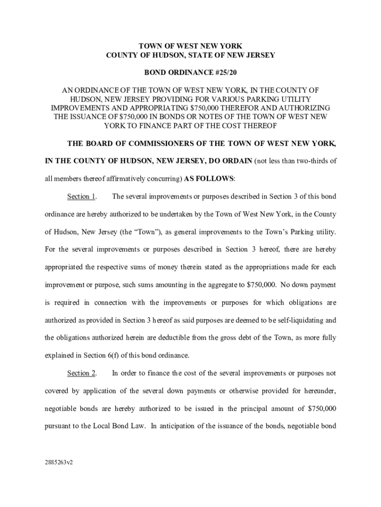 TOWN OF WEST NEW YORK COUNTY OF HUDSON, STATE OF NEW JERSEY BOND ORDINANCE #25/20 AN ORDINANCE OF THE TOWN OF WEST NEW YORK, IN THE COUNTY OF HUDSON, NEW JERSEY PROVIDING FOR VARIOUS PARKING UTILITY