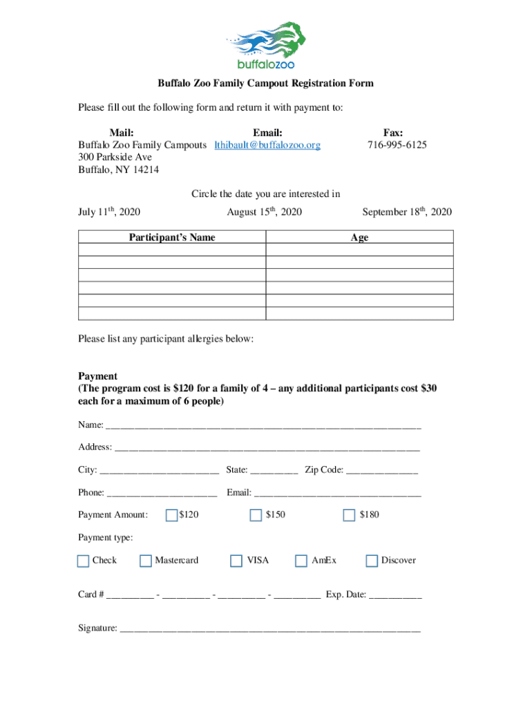 Get the free Buffalo Zoo Family Campout Registration Form