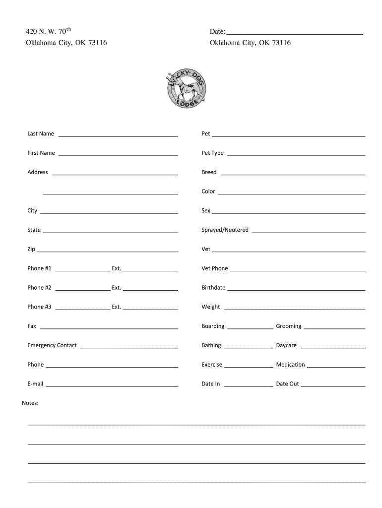 420 N. W. 70 t h Date: Oklahoma City, OK 73116 Oklahoma City, OK 73116 Last Name Pet First Name Pet Type Address Breed Color City Sex State Sprayed/Neutered Zip Vet Phone #1 Ext. Vet Phone #2 Ext.