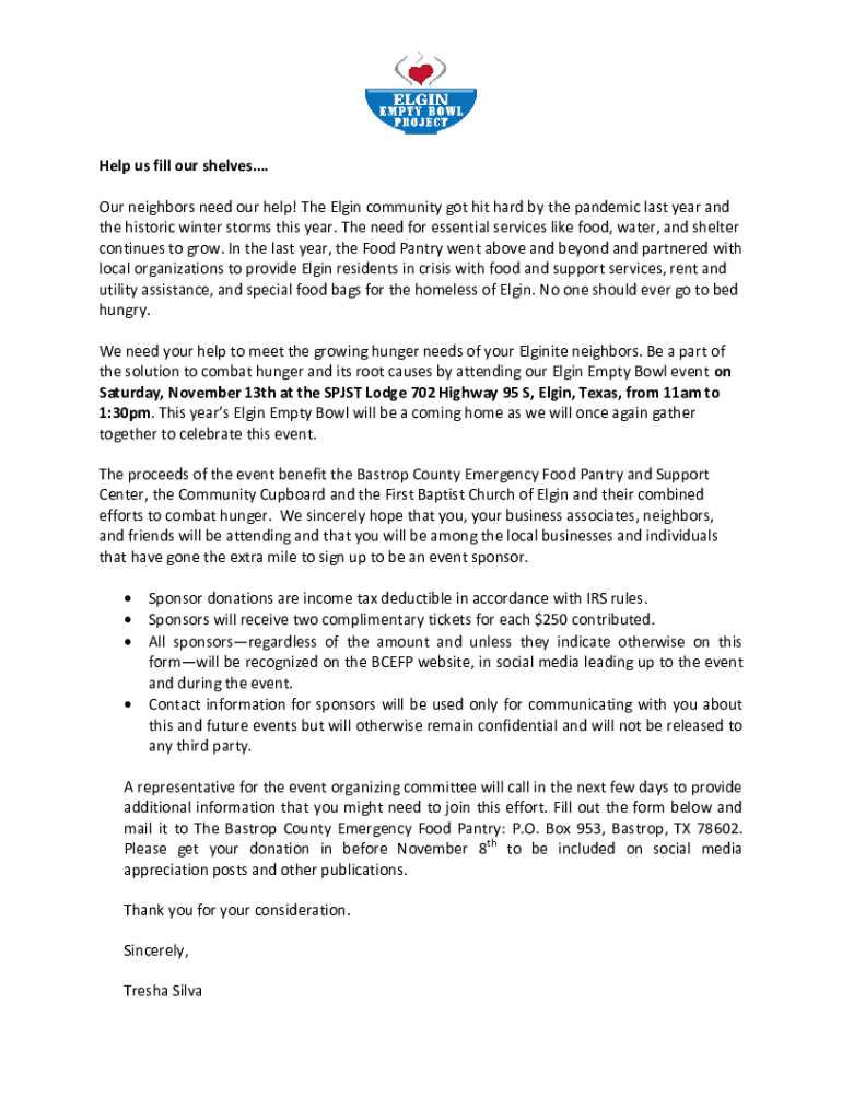 Help us fill our shelves. Our neighbors need our help! The Elgin community got hit hard by the pandemic last year and the historic winter storms this year. The need for essential services like food,